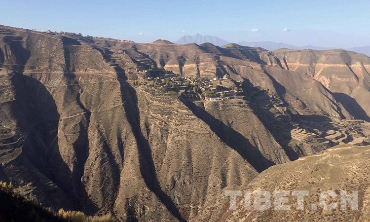 圖為搬遷前農(nóng)牧民在山間的聚居村落 圖片由尖扎縣扶貧開發(fā)局提供