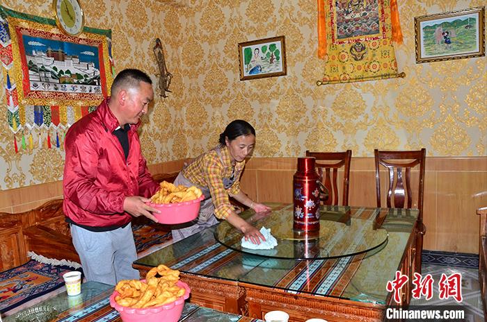 圖為8月20日扎西夫婦倆為客人準備晚餐。 中新社記者 魯丹陽 攝