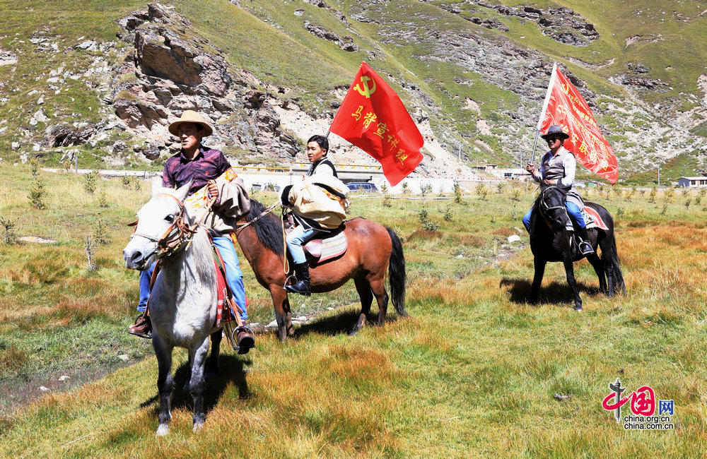 “馬背宣講隊(duì)”讓黨的方針政策進(jìn)入尋常百姓家。攝影:孫磊