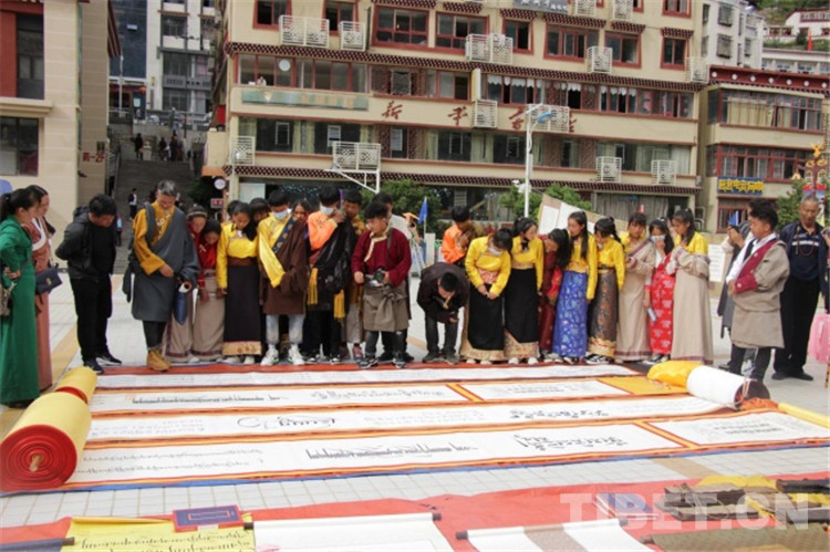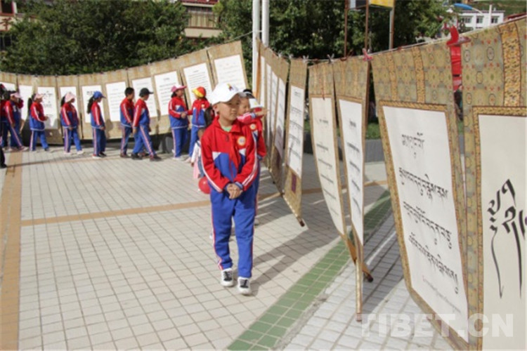 中國(guó)西藏網(wǎng)訊 9月25日,四川省甘孜藏族自治州得榮縣“喜迎建州70周年?首屆藏文書法展覽活動(dòng)”開幕。書法愛好者、農(nóng)牧民群眾、中小學(xué)生、僧尼等近1000余人在書法長(zhǎng)卷、古籍前駐足學(xué)習(xí)、拍照。