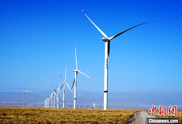 驅(qū)車近3小時(shí)后,中新社記者站在青海省海南藏族自治州“青豫特高壓外送基地”電源配置項(xiàng)目1300兆瓦風(fēng)電場,放眼望去,一臺(tái)臺(tái)矗立的風(fēng)機(jī)綿延數(shù)百公里。