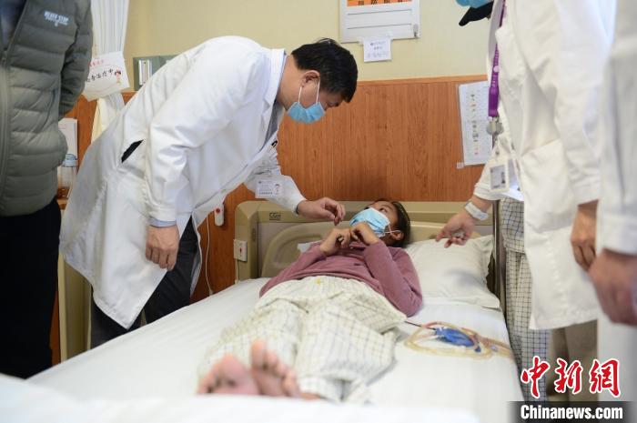 近日,一對來自青海玉樹、患肝包蟲病的姐弟在北京接受免費(fèi)手術(shù)治療。手術(shù)由中國工程院院士、北京清華長庚醫(yī)院院長董家鴻親自主刀。圖為董家鴻院士為患者查房,了解病情。“同心·共鑄中國心”基金 供圖 中新社 發(fā) “同心·共鑄中國心”基金 攝
