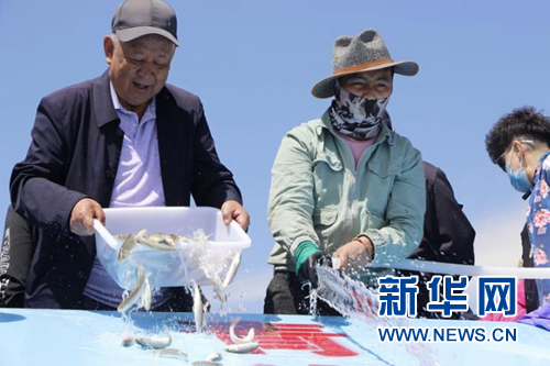 6月6日,當地群眾將青海湖裸鯉魚苗投放到布哈河。新華社記者 周喆 攝