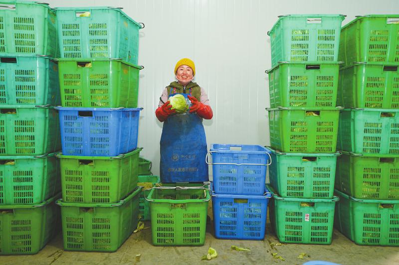 11月26日,木椏村村民策寶寶在冷鏈基地為生菜分揀裝框。她在工廠務(wù)工一年能有2萬(wàn)元左右的收入。四川日?qǐng)?bào) 向宇 攝