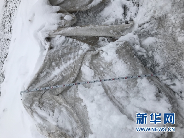 王飛騰團(tuán)隊發(fā)現(xiàn),“蓋被子”區(qū)域的冰體消融速度減緩。“‘蓋被子’的地方比不‘蓋被子’的地方冰的厚度高了一米,這高出來的一米就是‘蓋被子’的效果?!蓖躏w騰介紹。