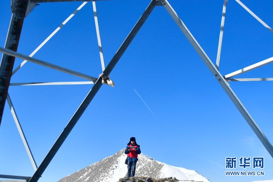 1月21日,國家電網(wǎng)西寧供電公司輸電運檢中心運檢人員在登山巡檢。新華社記者 張龍 攝