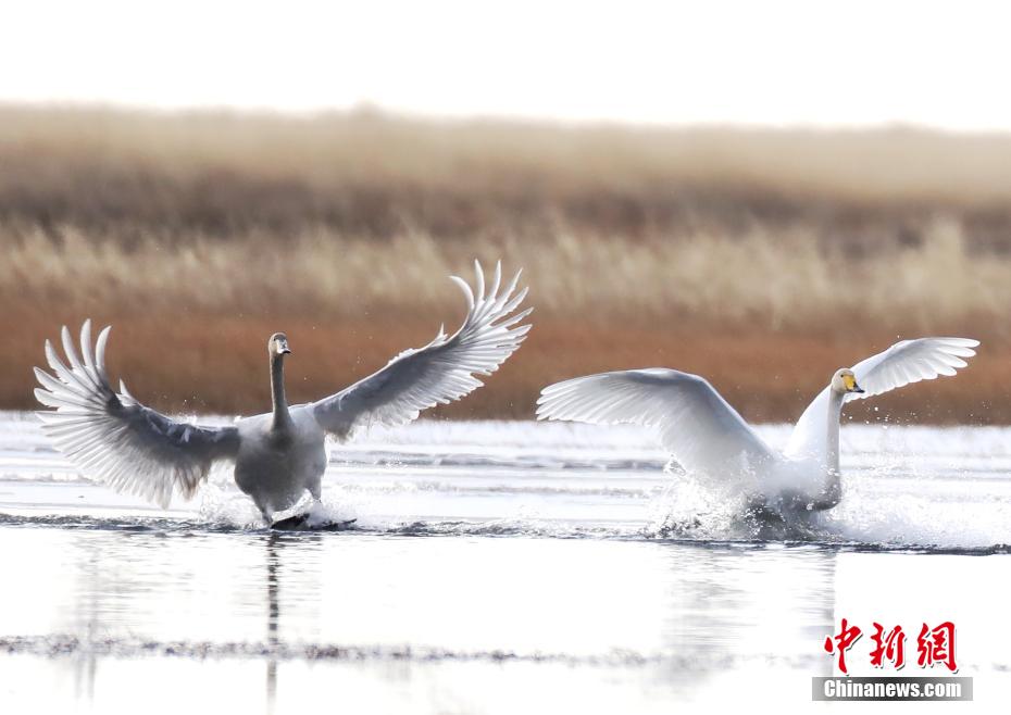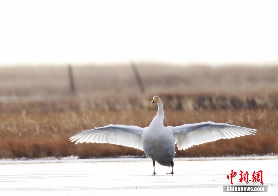 連日來,成群的野生大天鵝陸續(xù)飛臨四川省阿壩藏族羌族自治州若爾蓋縣高原小鎮(zhèn)麥溪鄉(xiāng)的洛賈瓊果河棲息越冬。這些跨越千里來此越冬的精靈讓洛賈瓊果河充滿了童話色彩,近百只天鵝在偌大的湖面上自由自在地覓食嬉戲,一會兒在天空翱翔,一會兒又成群結隊地在湖面上追逐,時而淺吟低唱,時而引吭高歌,時而振翅高飛,愜意十足,為冰封雪凍的高原濕地增添了些許靈動與生機,成為草原冰雪世界一道靚麗的風景。