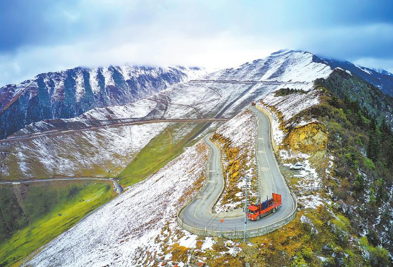 車輛沿著蜿蜒的山路前行,不一會(huì)兒,眼前已是白雪皚皚。60多公里路程走了近2個(gè)小時(shí),記者來(lái)到位于夾金山下的藏寨——磽磧,再往前就是紅軍長(zhǎng)征翻越夾金山紀(jì)念地。