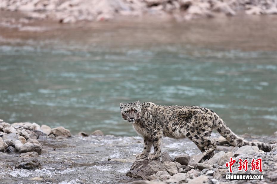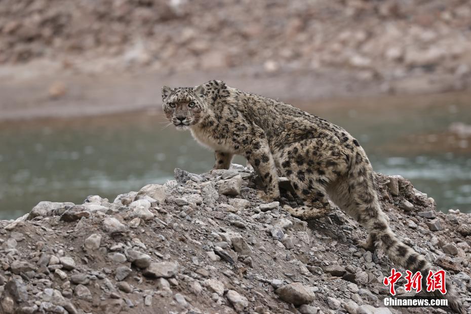 圖為雪豹在河邊四處觀望。張蓉芝 攝
