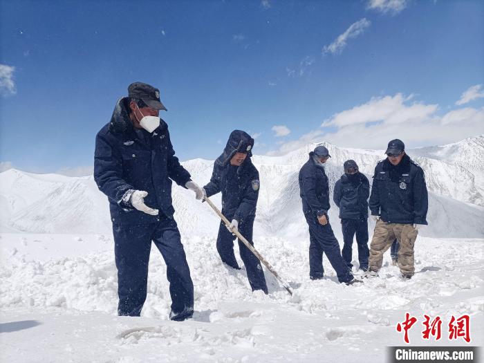圖為清雪時的生態(tài)管護(hù)人員。丁巴達(dá)杰 攝