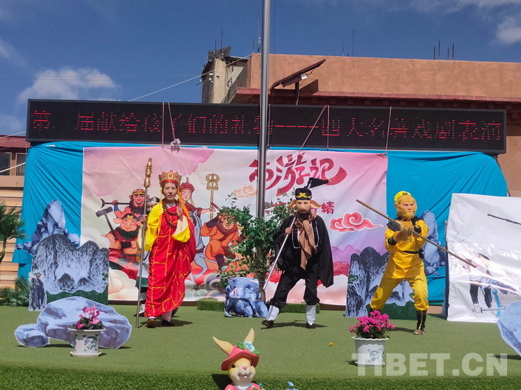 藏語版《西游記之三打白骨精》按原著還原了唐僧師徒四人的這段經(jīng)歷,別樣風趣的本地藏語方言對話、一波三折的故事情節(jié)贏得了觀眾的熱烈掌聲?!度龂萘x之桃園三結(jié)義》戲劇情節(jié)中,劉備、關(guān)羽和張飛三人肝膽相照、取長補短、互改缺點,以引人入勝的小故事引導孩子們陶冶道德情操、多交志同道合的朋友。