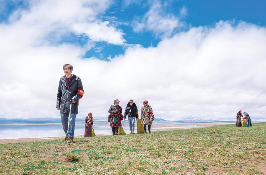 年近60歲退休教師新文是唐古拉山鎮(zhèn)的第一位民間河長,他用生命守護著這條母親河,他相信用辛勞和汗水堅守的源頭水,會更清澈,生態(tài)還會更好。他說:“近幾年來,鎮(zhèn)上不斷開展以生態(tài)保護為主題的大型活動,也會組織大家去撿拾垃圾和開展生態(tài)保護政策的宣傳,沱沱河鎮(zhèn)區(qū)的衛(wèi)生也安排了保潔人員進行清掃,這一系列的工作使得環(huán)境有了很大的改善,保護母親河應從源頭治理是功在當代、利在千秋的事業(yè),宣傳好國家保護生態(tài)環(huán)境的政策,讓生態(tài)環(huán)境保護深入人心,使群眾不斷增強保護河湖、保護濕地生態(tài)環(huán)境的意識是我們的目標,但保護生態(tài)環(huán)境僅靠本地群眾和政府還遠遠不夠,還需全社會的共同參與?!?/p>