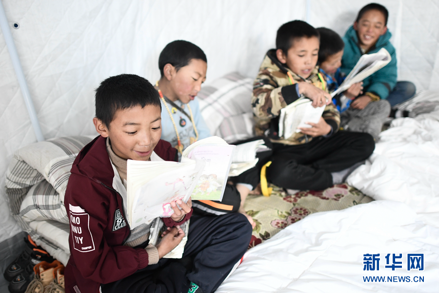 灰白色的天幕下,湛藍色的救災帳篷顯得格外顯眼。學校教師拉毛措告訴記者:地震發(fā)生后,老師們組織186名學生在5分鐘內(nèi)全部疏散到操場,隨后轉(zhuǎn)移到搭建好的救災帳篷內(nèi)。