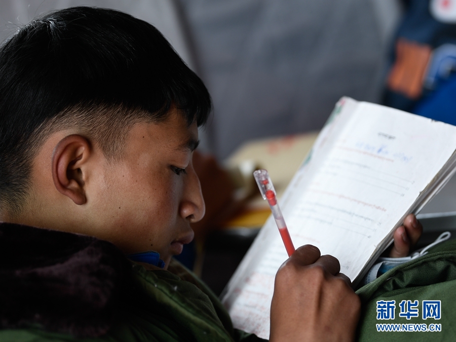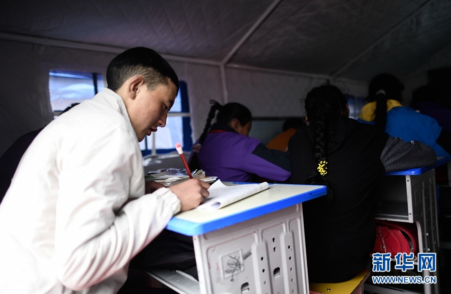 5月23日,瑪多縣民族寄宿制中學(xué)學(xué)生在帳篷教室上課。新華社記者 張龍 攝