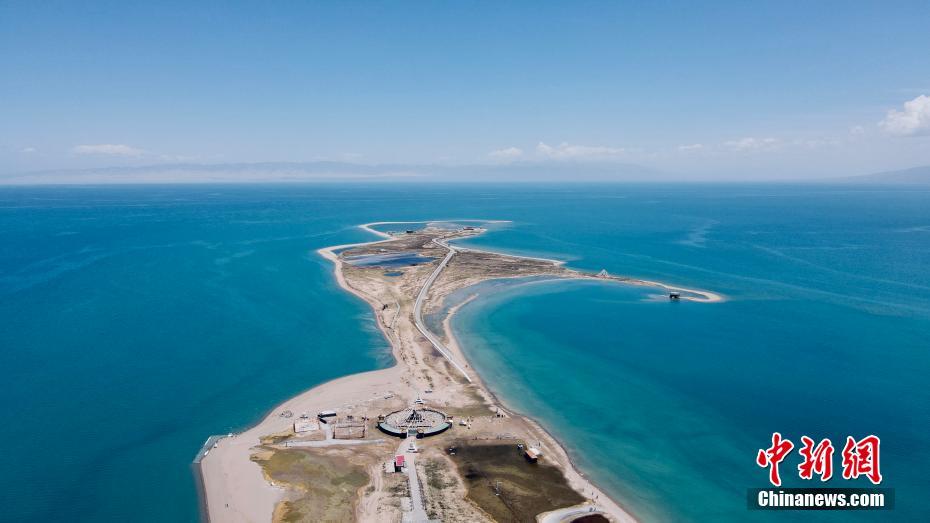 6月7日,航拍青海湖二郎劍景區(qū)一角碧波蕩漾,風(fēng)景如畫。(無人機(jī)照片) 中新社記者 李江寧 攝