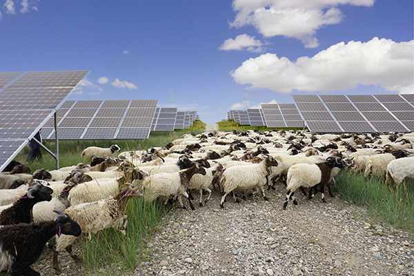 雜草越長越好,既遮擋光伏板工作,在冬季還有火災(zāi)隱患。周邊村民受邀進(jìn)園區(qū)放羊, 為鋤草助力。再加上清洗光伏組件、割草、做保安,村民們拓寬了收入渠道,得以脫貧致富。這種牧光互補(bǔ)的模式,實(shí)現(xiàn)了經(jīng)濟(jì)、環(huán)境效益雙贏,也豐富了清潔能源產(chǎn)業(yè)的內(nèi)涵。