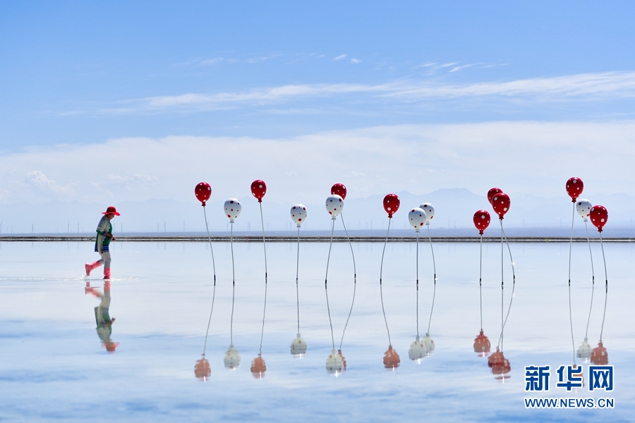 安靜的湖面上沒有一絲波瀾,遠處的雪山倒映在湖面上宛如一幅構圖對稱的油畫。青藏高原的6月仍覺微寒,在茶卡鹽湖景區(qū),來自全國各地的游客在湖邊拍照“打卡”,好不熱鬧。