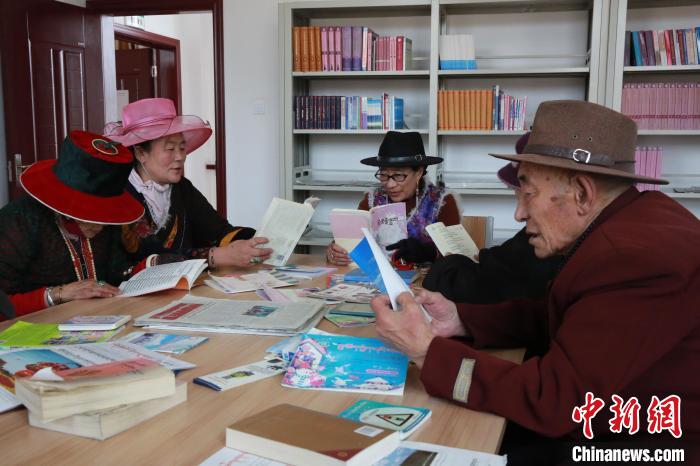 閱覽室內(nèi),三四位老人圍桌而坐,口中不停念著,“這是草原牧民口耳相傳的格薩爾詩(shī)篇,”德高說(shuō),隔壁房間的老人們正切磋藏棋、縫紉機(jī)前忙碌,“他們閑時(shí)編織門簾、口袋,放在‘愛心超市’展出、售賣,還把這種傳統(tǒng)手藝教給附近學(xué)校的小孩子?!?/p>