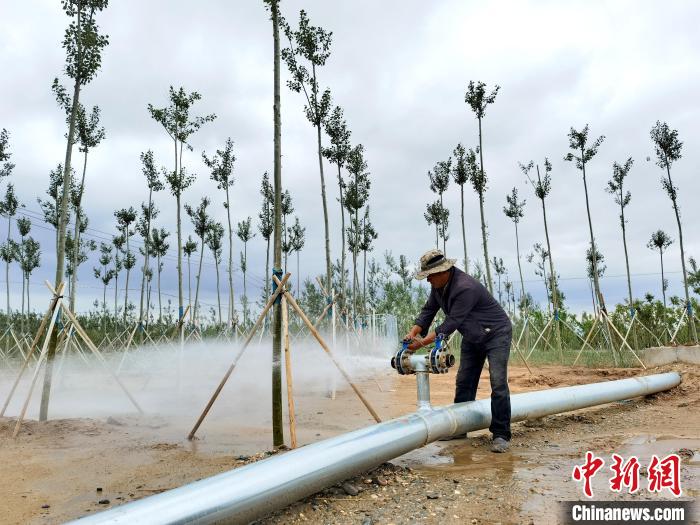 正如何香龍說的“三分種,七分護(hù)”,栽樹完成后,為了能讓樹苗存活,澆水是必不可少的工作?!案珊怠L(fēng)大,都是我們這里植被生存面臨的難關(guān),為此,青海省林草局投資200萬元鋪設(shè)了灌溉系統(tǒng),每棵樹特地用三腳架固定起來了?!焙蜗泯堈f。