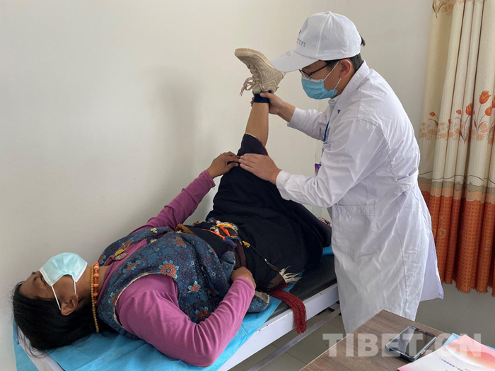 圖為石少輝大夫現場檢查患者癥狀(組委會供圖)