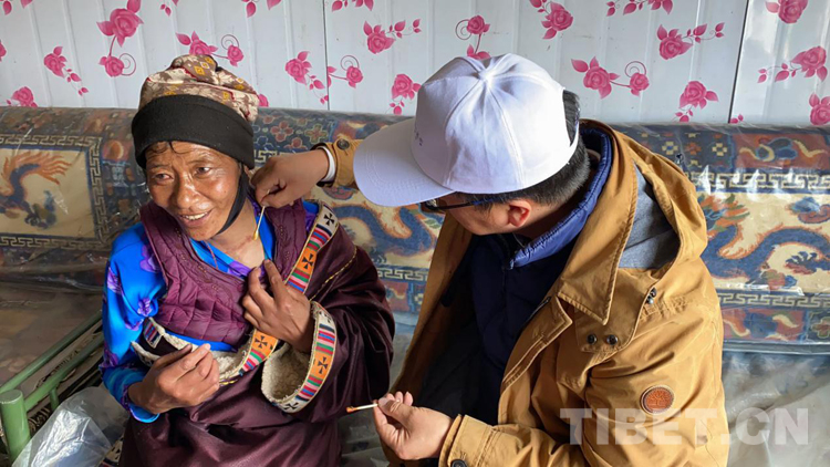 圖為陳林大夫?yàn)轳R朋措做檢查(組委會(huì)供圖)