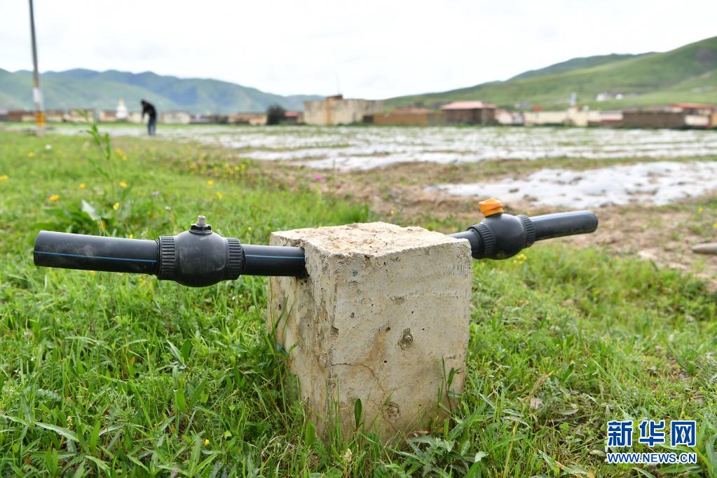壤塘縣瑟谷村蔬菜基地內(nèi)的灌溉設(shè)施(7月17日攝)。新華社記者 李鑫 攝