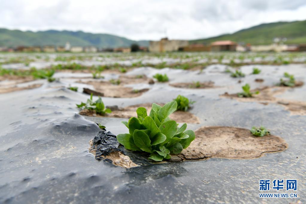 壤塘縣瑟谷村蔬菜基地內(nèi)種植的蔬菜(7月17日攝)。新華社記者 李鑫 攝