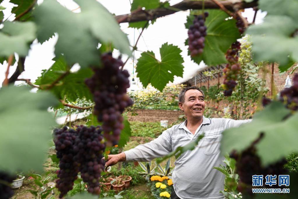 8月5日,魏金明在玉樹(shù)市結(jié)古鎮(zhèn)新寨村的蔬菜基地整理葡萄架。新華社記者 吳剛 攝