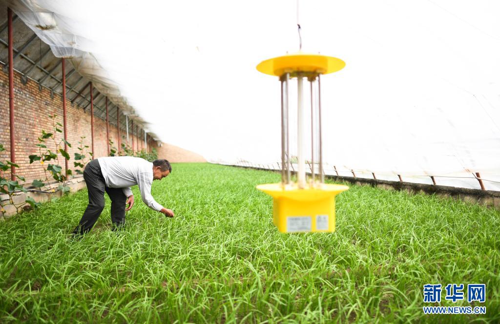 8月5日,魏金明在玉樹(shù)市結(jié)古鎮(zhèn)新寨村的蔬菜基地查看韭菜長(zhǎng)勢(shì)。新華社記者 吳剛 攝