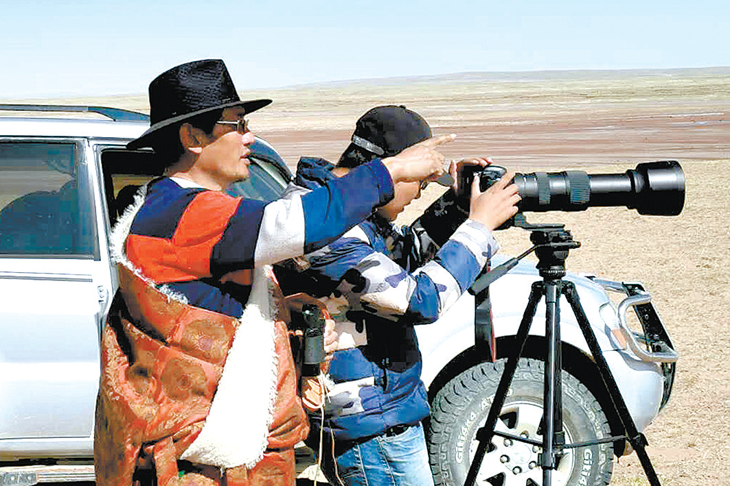 天上的措池,老村支書然西尕瑪望著漸行漸遠的藏羚羊群。