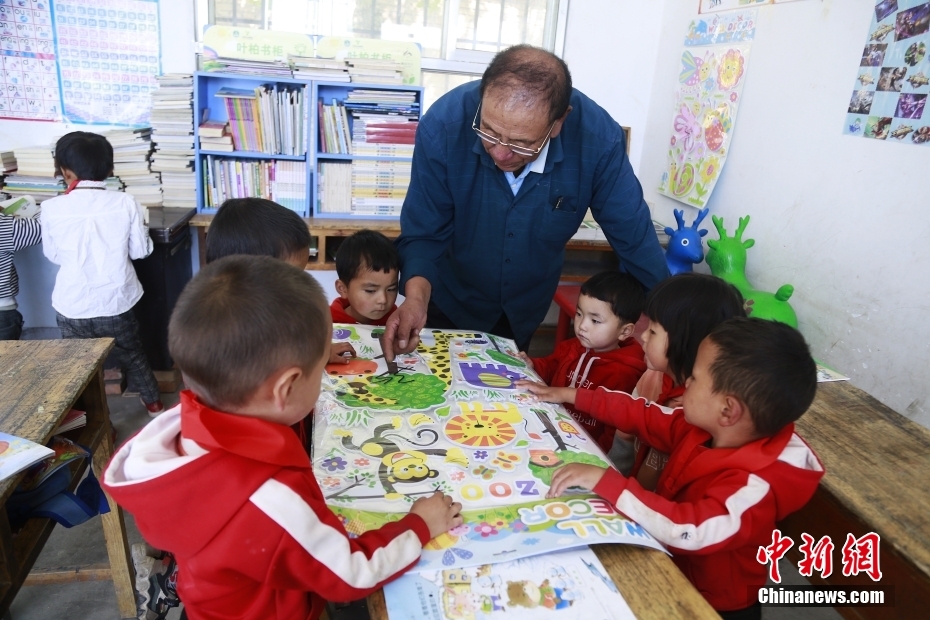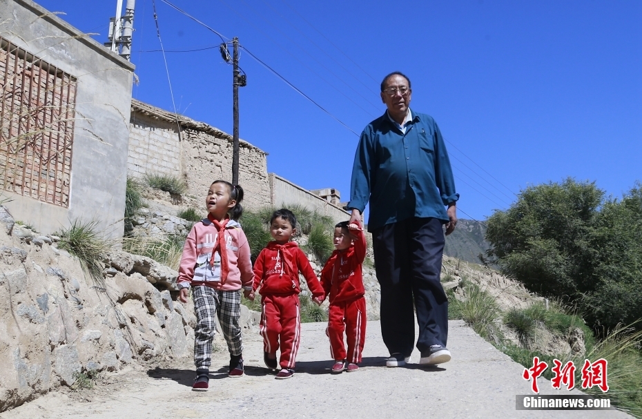 30年前他剛來學(xué)校時不會講當(dāng)?shù)氐娜隼逭Z言,村民也聽不懂他說的藏語??鄬W(xué)兩年后,他便能用一口純正的撒拉語和大家溝通。中新社記者 馬銘言 攝