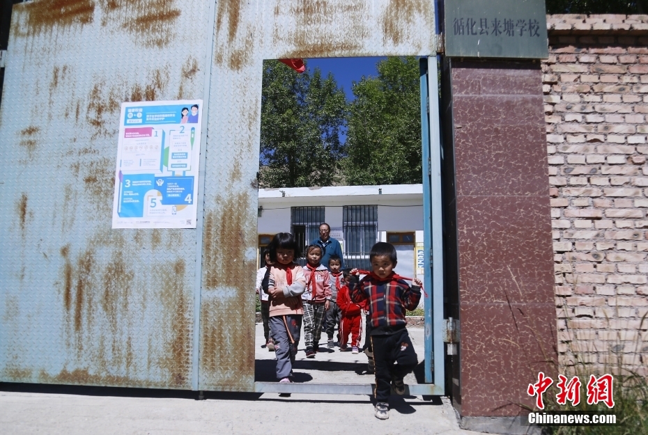 中午放學(xué),學(xué)生離開青海省海東市循化撒拉族自治縣白莊鎮(zhèn)來塘村來塘學(xué)校。中新社記者 馬銘言 攝