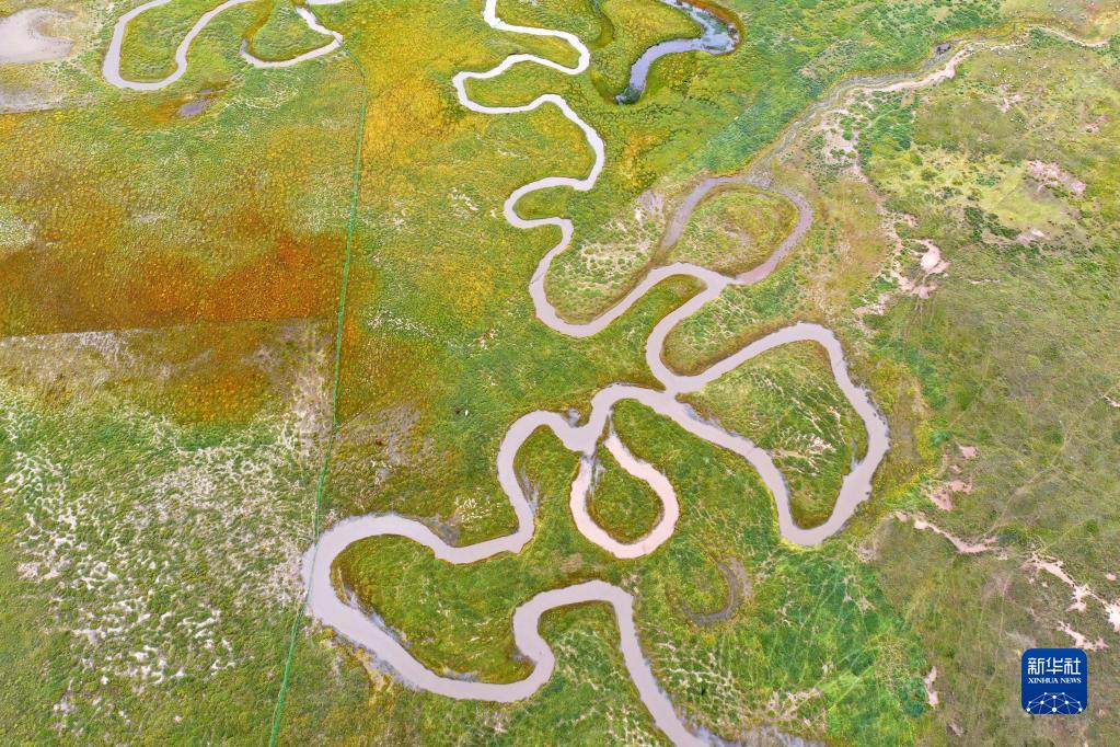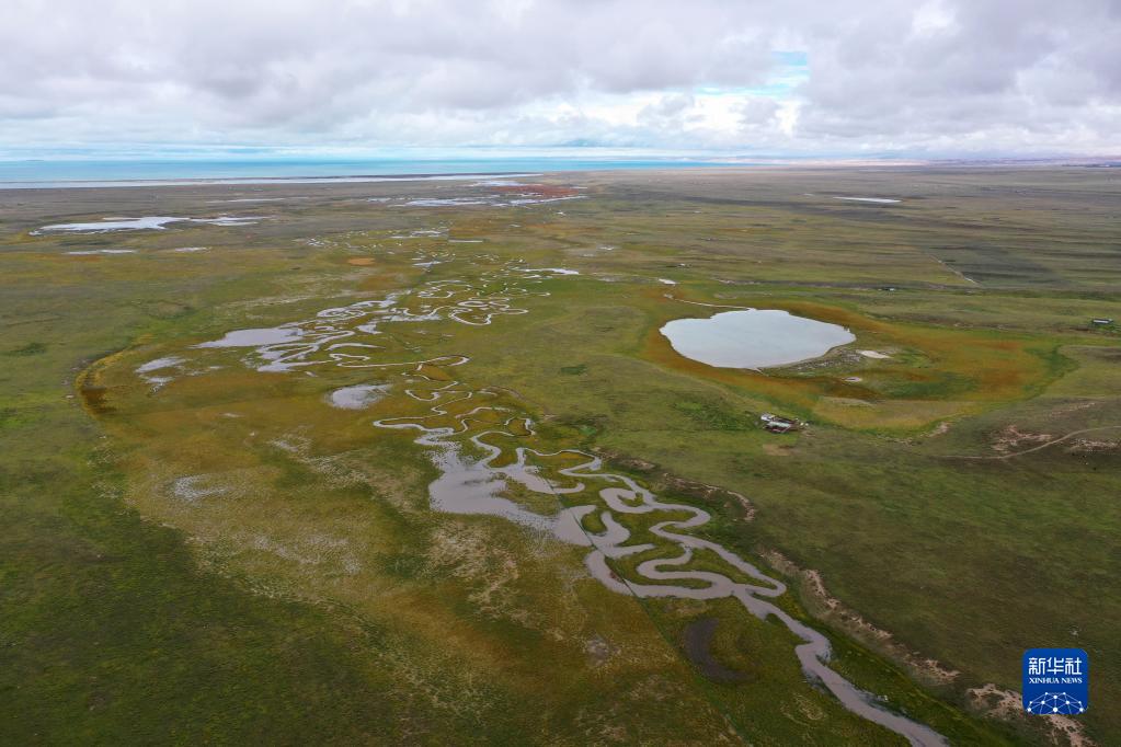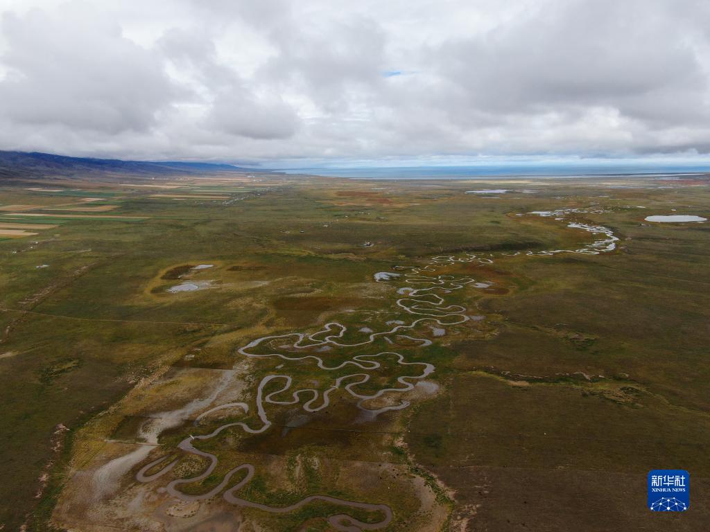 這是9月15日拍攝的青海湖畔的倒淌河(無(wú)人機(jī)照片)。新華社記者 邢廣利 攝