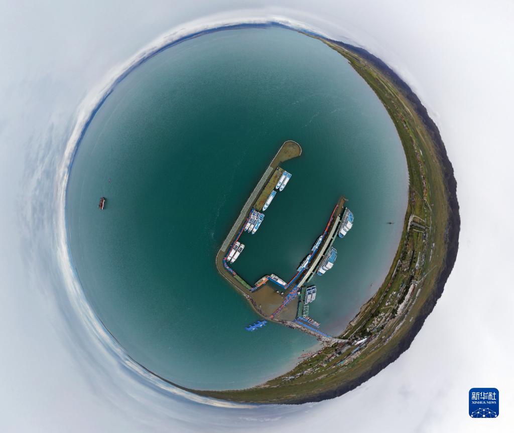 這是9月15日拍攝的青海湖上停泊的船只(無(wú)人機(jī)照片)。新華社記者 邢廣利 攝