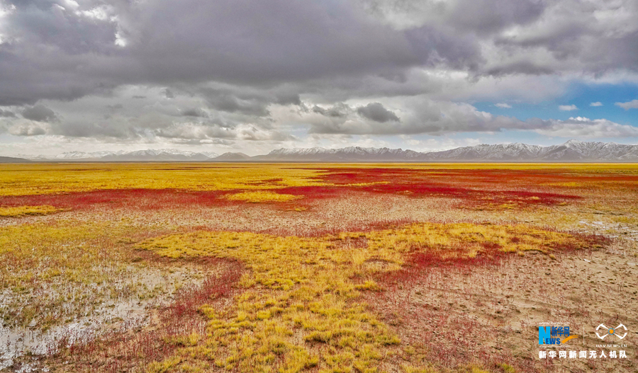 冬格措納湖位于青海省果洛藏族自治州瑪多縣境內(nèi),海拔4000米以上。秋日的冬格措納湖,湖水湛藍、天空遼闊,湖畔的草地紅綠黃交融,一幅大自然的美麗畫卷在這里展開。新華網(wǎng) 宋忠勇 攝