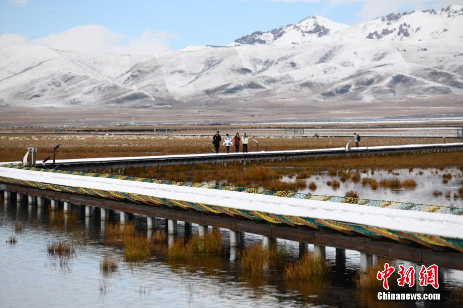 10月20日,四川省阿壩州若爾蓋大草原雪后銀裝素裹。從19日晚間起,若爾蓋縣境內(nèi)迎來降雪,花湖生態(tài)旅游區(qū)被皚皚白雪覆蓋,美輪美奐?;ê屈S河(若爾蓋段)的重要水源涵養(yǎng)地,也是若爾蓋濕地國家級自然保護區(qū)的“實驗區(qū)”的一部分,自保護工作開展以來,花湖自然水位提高30厘米,濕地湖泊面積從原來的215公頃擴大到650公頃,恢復(fù)湖泊周邊半沼澤和干沼澤892公頃。