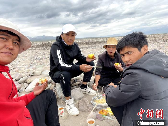 圖為駐村工作隊(duì)在走訪途中吃飯。(資料圖) 沈延峰 攝