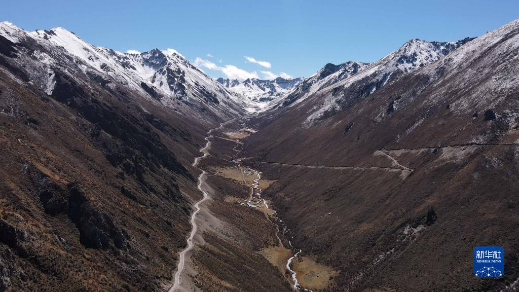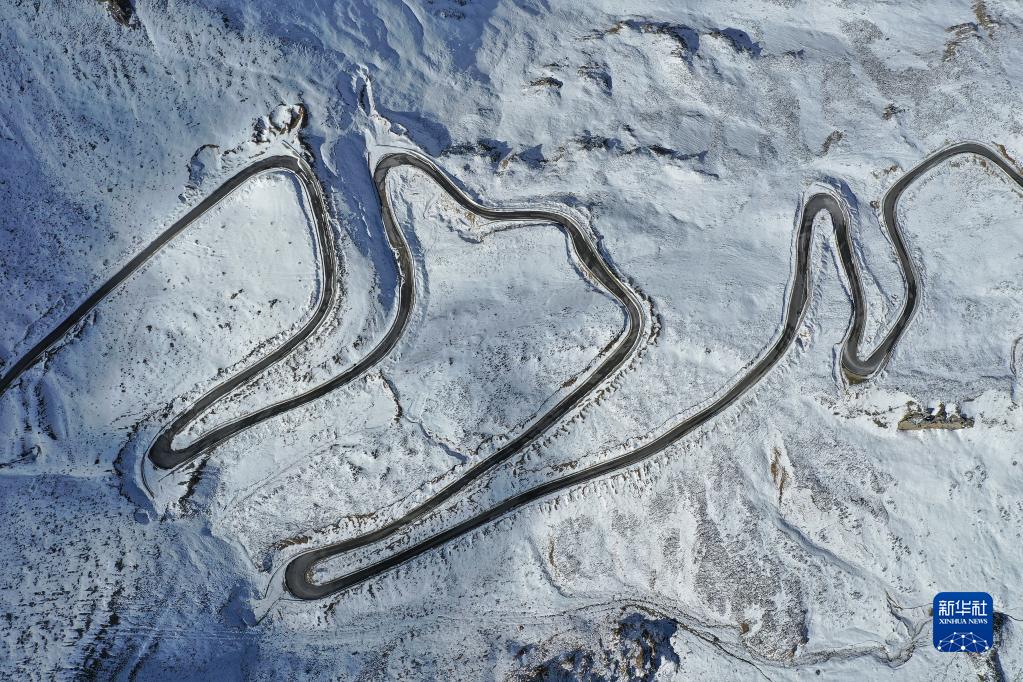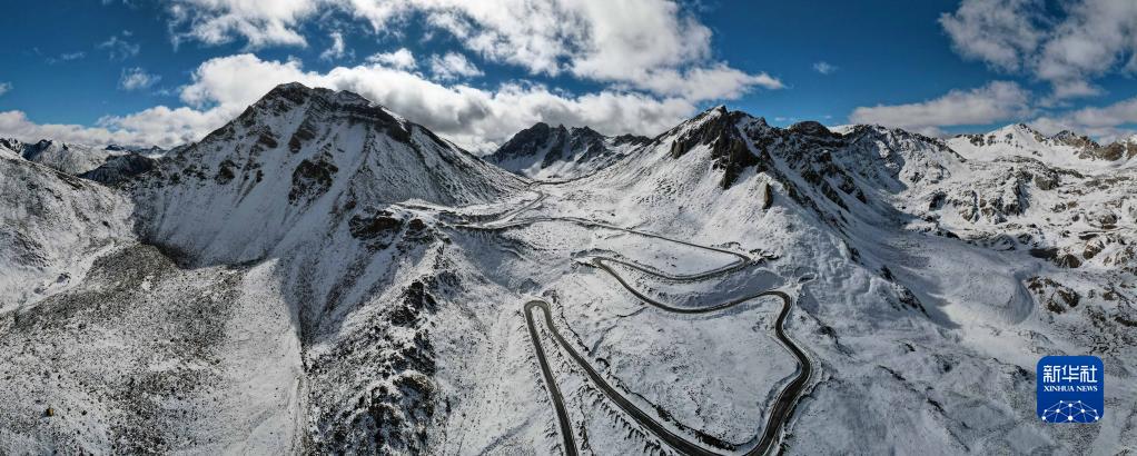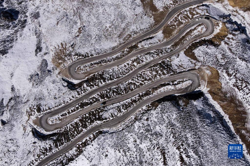 這是四川省甘孜藏族自治州巴塘縣境內(nèi)的通往藏巴拉雪山埡口的公路(10月23日攝,無(wú)人機(jī)全景照片)。新華社記者 胥冰潔 攝
