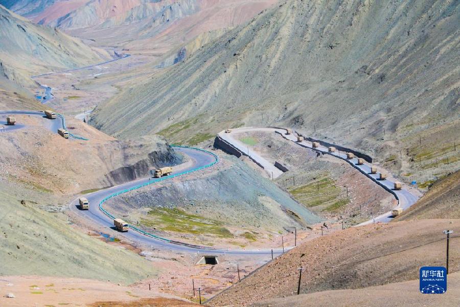 聯(lián)勤保障部隊(duì)汽車(chē)運(yùn)輸某團(tuán)一營(yíng)一連在執(zhí)行運(yùn)輸任務(wù)(2020年8月7日攝)。新華社發(fā)