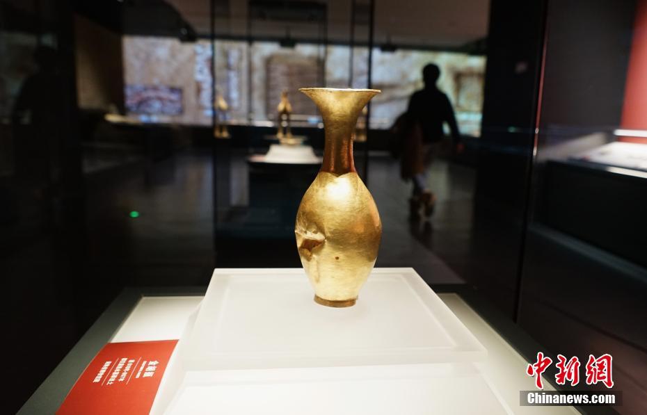 11月29日,位于青海省西寧市的青海省博物館展出從該省海西州都蘭縣熱水墓群出土的金胡瓶。當日,青海省博物館經一年半升級改造后開館并舉辦“1+3”主題展覽,160件藏品首次亮相。該展覽以青海歷史文物為主,青海非物質文化遺產、考古成果、百年革命文物為輔,多角度展現(xiàn)地域歷史及民族文化。據(jù)了解,升級后的博物館上展文物1331件(套)/2405件,其中一級文物191件,珍貴文物248件(套),上展文物體量為青藏高原最大。 中新社記者 馬銘言 攝