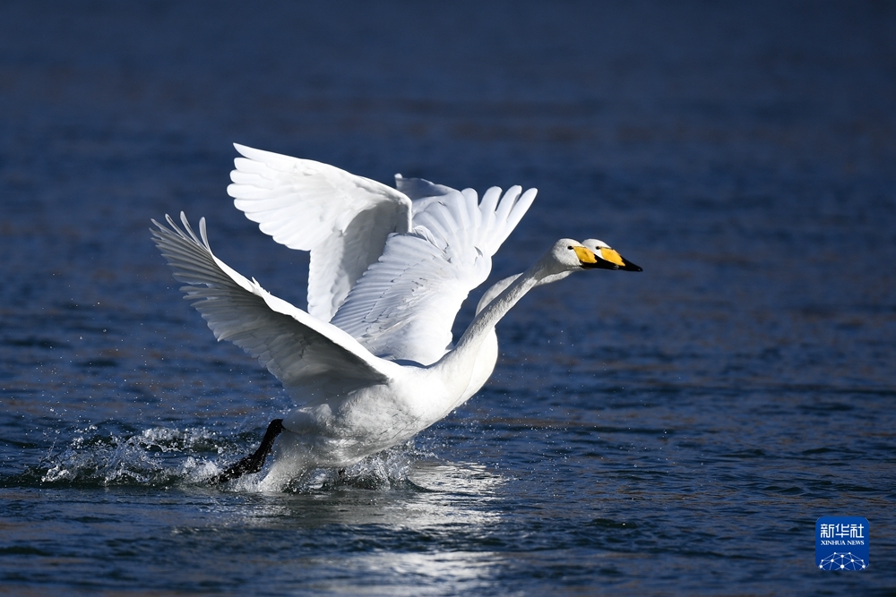 大天鵝飛抵柴達木盆地都蘭湖國家濕地公園“越冬”