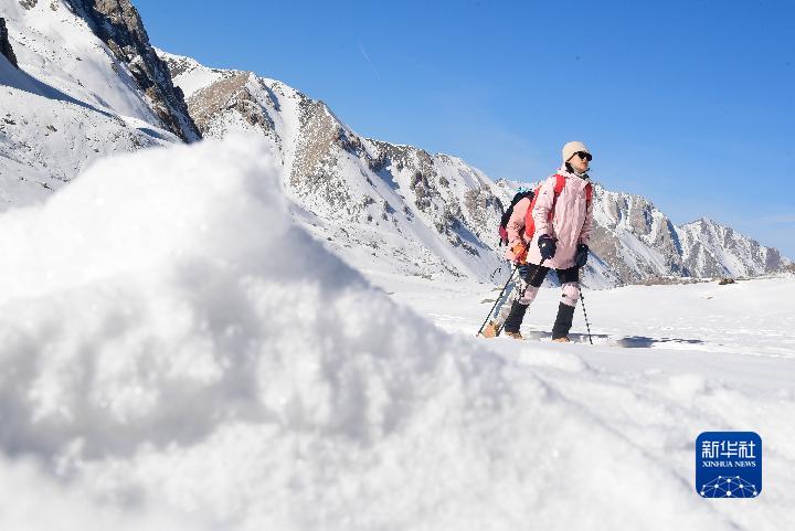 當(dāng)日,在青海省海北藏族自治州門源回族自治縣,登山愛好者們攀登崗什卡雪峰,在山巔和雪原中度過新年第一天。