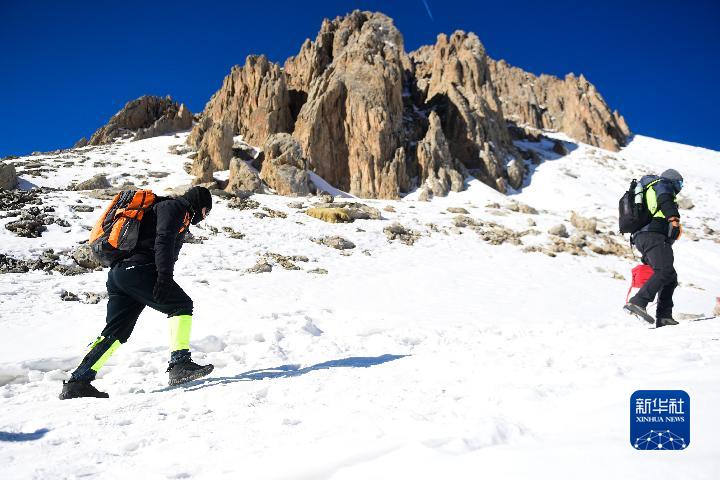 1月1日,登山愛好者攀登崗什卡雪峰。新華社記者 張龍 攝