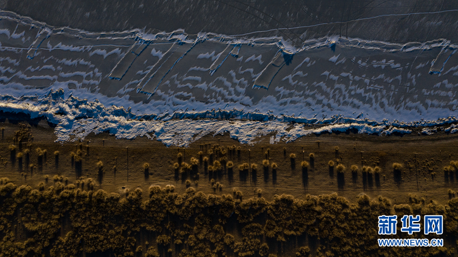 陽(yáng)光灑在冰封的湖面上。新華網(wǎng) 宋忠勇 攝