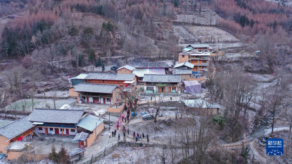 這是1月13日拍攝的隴南市文縣鐵樓藏族鄉(xiāng)寨科橋村(無(wú)人機(jī)照片)。新華社記者 郎兵兵 攝