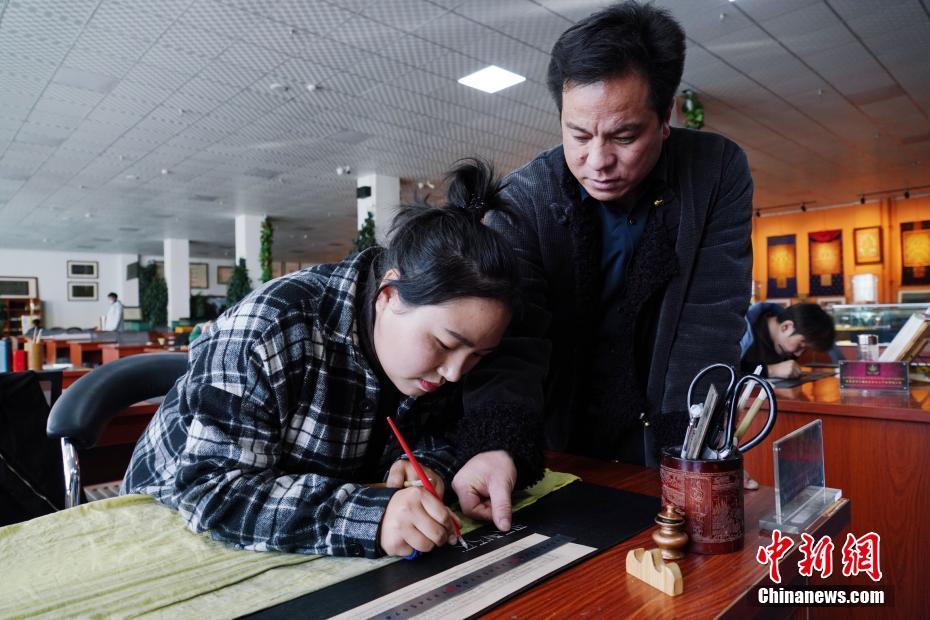1月18日,青海省黃南藏族自治州尖扎縣非物質(zhì)文化遺產(chǎn)綜合傳習中心內(nèi),學員們正在抄寫經(jīng)文。該中心現(xiàn)有50名學員學習藏文書寫、唐卡繪制、藏紙手工制作技藝等。他們在學習、了解豐富多彩的藏族文化知識外,每年還可增收近5萬元人民幣。中新社記者 馬銘言 攝