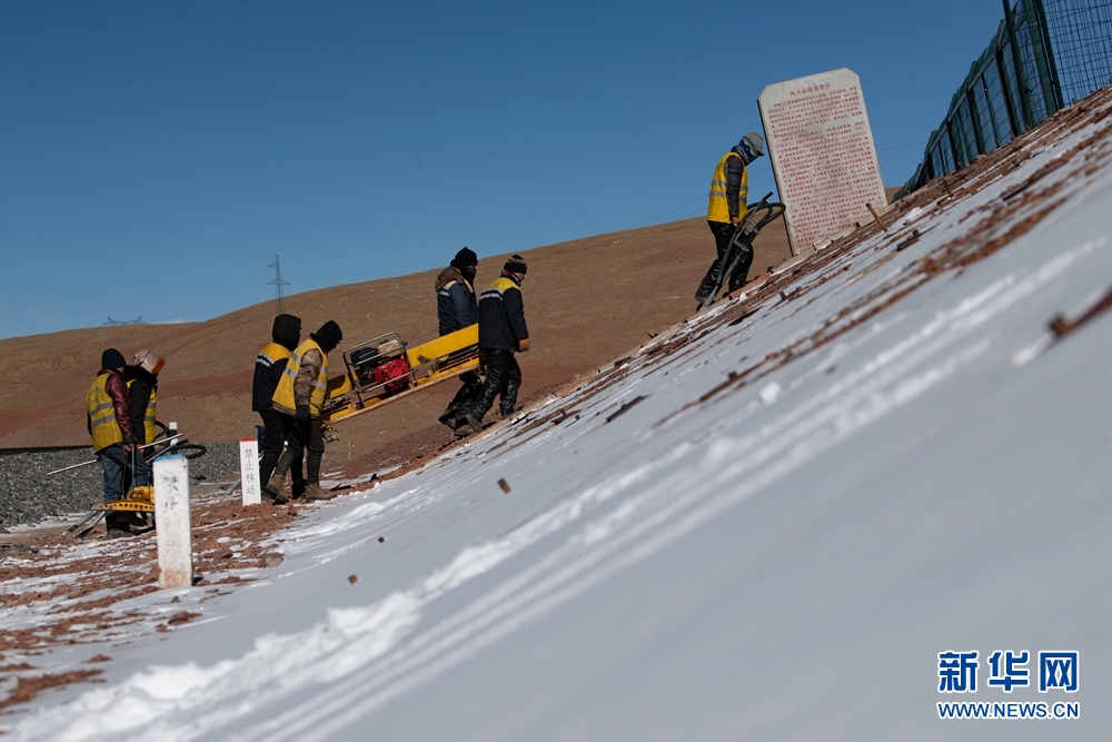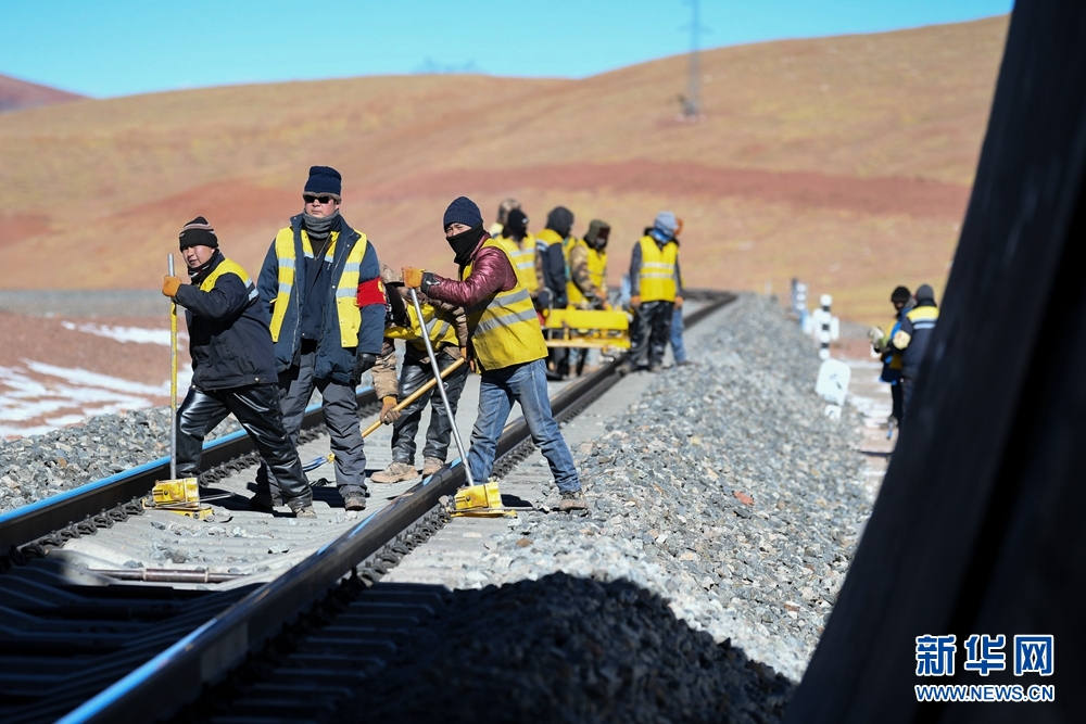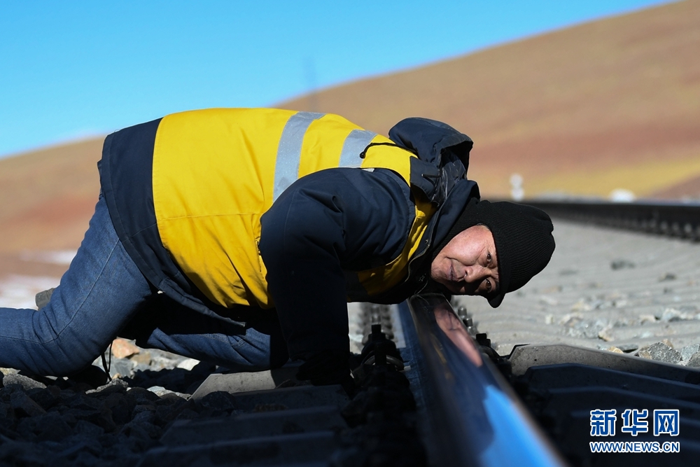 時(shí)而在鐵軌上敲敲打打,時(shí)而趴在鐵軌上觀察平整度……中國(guó)鐵路青藏集團(tuán)公司格爾木工務(wù)段秀水河線路車間的職工不畏高寒缺氧,頂風(fēng)冒寒堅(jiān)守在這里。
