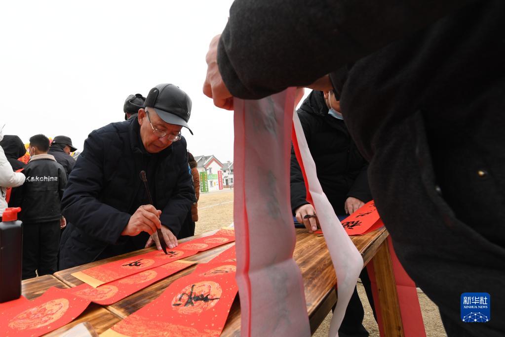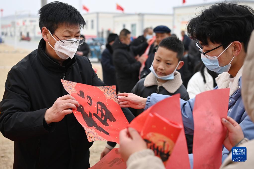 1月25日,在蘭州新區(qū)舟曲避險(xiǎn)搬遷安置點(diǎn),舟曲地質(zhì)災(zāi)害避險(xiǎn)搬遷第一臨時(shí)黨支部組織書(shū)法家給搬遷群眾送春聯(lián)。新華社記者 范培珅 攝