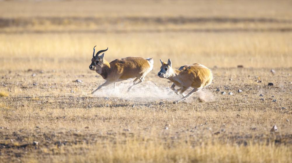 “這個元宵節(jié),又是跟這群小家伙們一起度過咯!”草場深處,一群毛色暗黃、臀部雪白的普氏原羚正在你追我趕,悠然嬉戲。
