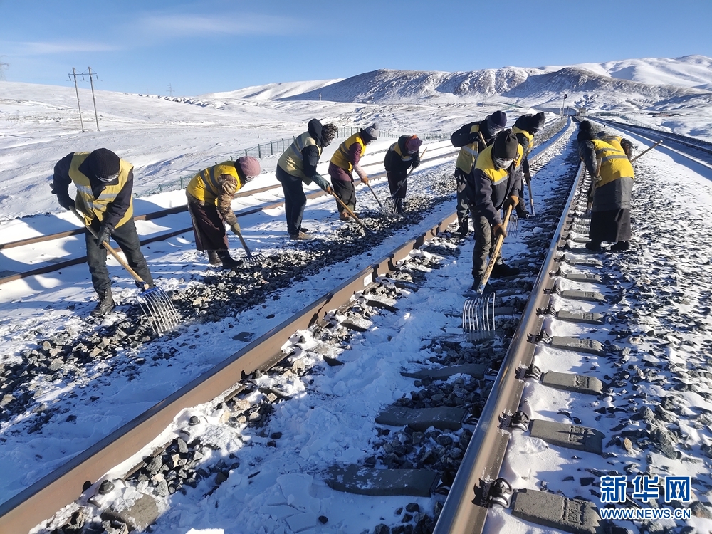 春運(yùn)期間,他們頂風(fēng)雪、冒嚴(yán)寒,堅(jiān)守在平均海拔超過4600米的工作崗位上??谡帧⒉碧?、棉帽……是他們的標(biāo)配,每天工作期間都需將自己包裹得嚴(yán)嚴(yán)實(shí)實(shí)。他們是中國鐵路青藏集團(tuán)公司格爾木工務(wù)段的一線職工,是春運(yùn)路上最美的“蒙面人”。圖片由中國鐵路青藏集團(tuán)公司格爾木工務(wù)段旦增桑珠、馬祎俊、許煒提供